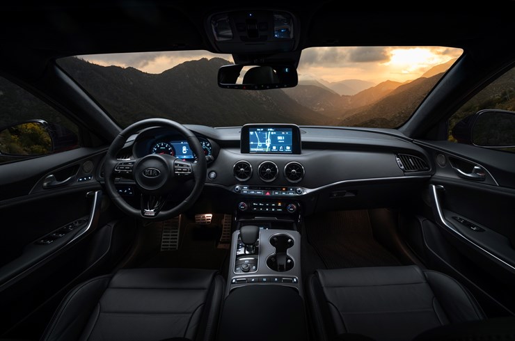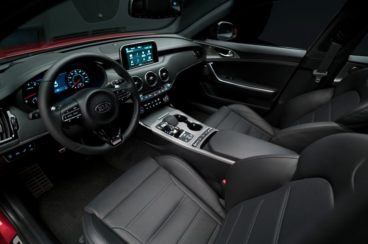 Recognizing that passionate drivers may not always reside in optimal climes, the Stinger is Kia’s first sedan available with rear- or all-wheel drive. Rear-wheel biased for optimal control in the wet or dry, the AWD system features a new Dynamic Torque Vectoring Control system which monitors driver inputs and road conditions and automatically applies power and braking force to the appropriate wheels to maintain course in adverse conditions. Rear-drive vehicles get the benefit of a mechanical limited slip differential to help evenly distribute power through the rear wheels.