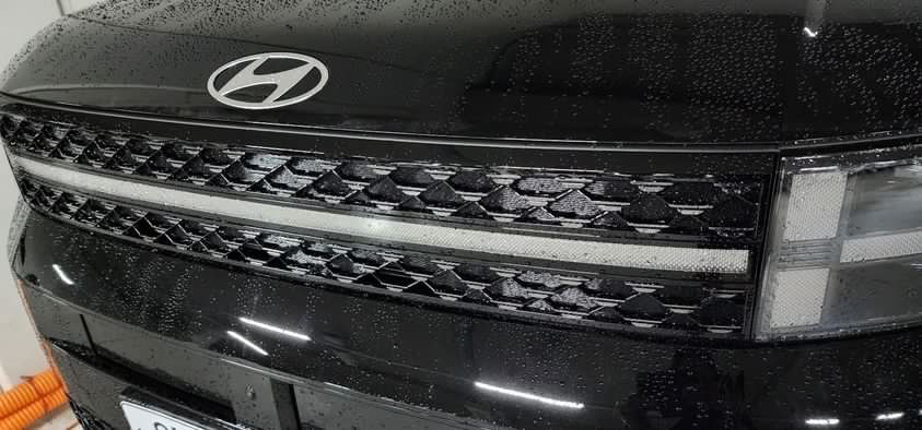 The front of the vehicle creates a sense of grandeur with its high hood, H-shaped headlamps and bold, sharp fenders. The H-shaped headlamps harmonize with the H-motif lower front design to enhance visual completeness. The H-shaped design elements reinterpret Hyundai’s ‘H’ emblem.