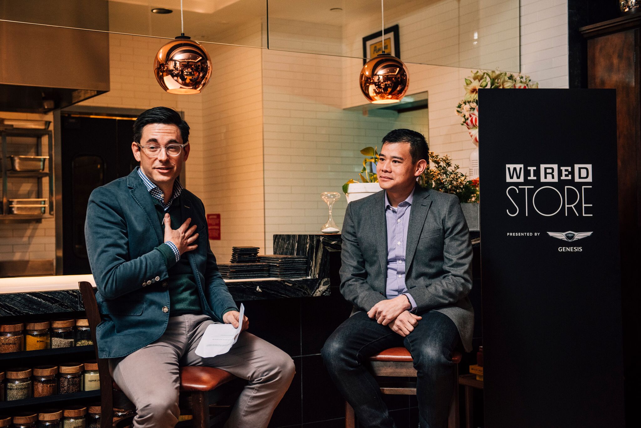 To kick off the WIRED Store, WIRED’s Jason Tanz, and Genesis’ brand ambassador, Wesley Chan, Managing Director at Felicis Ventures, and previously a General Partner at Google Ventures, hosted an invitation-only event, discussing “The Future of Our Connected World” and a tour of the store on Wednesday, December 13.