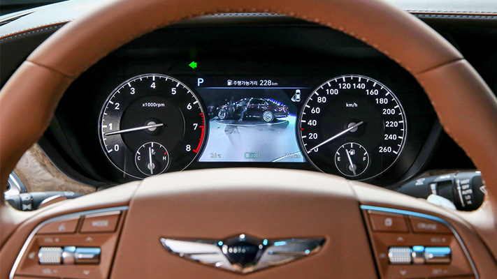 The G90 introduces multiple technology firsts for the Genesis brand, as befitting a flagship. It is the first Genesis vehicle to offer over-the-air wireless updates for maps and software. The 12.3-inch display navigation system is re-engineered to incorporate a copper Graphic User Interface(GUI), allowing users to zoom in and out of the touchscreen. The split screens are highlighted with signature copper accents.