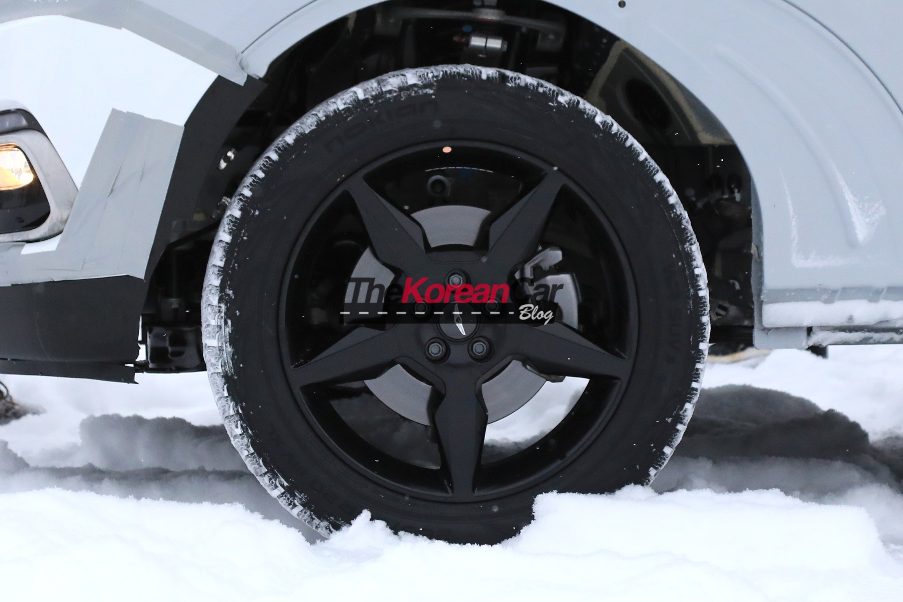 These are the very first spy shots of the new Genesis SUV coming in 2020. Both chassis testing mules had a very modified body of the Santa Fe with a much longer wheelbase and a wider track. One thing we’ve noticed are the wheels.