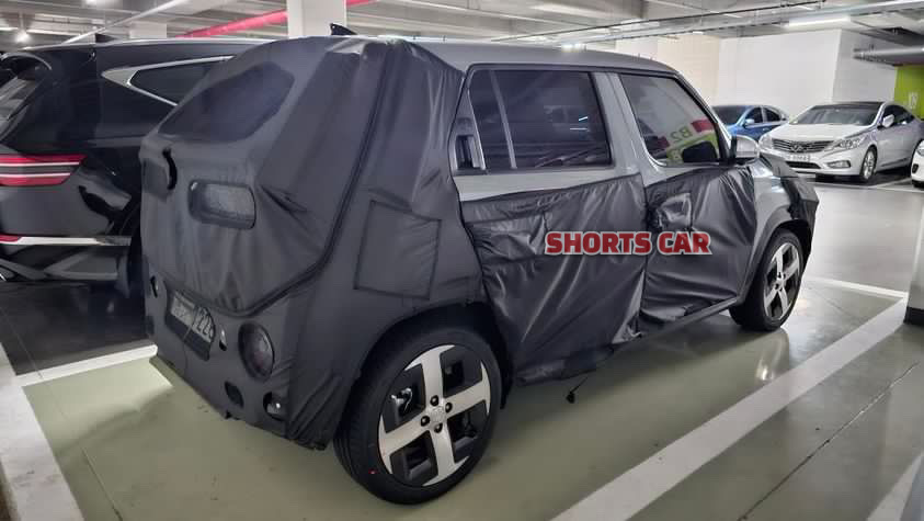 Back to the Casper, the small SUV is still fully covered of camouflage, using canvas camouflager all together so it’s not visible in detail, but you can see the triangular grille pattern or the rounded headlamps together with same eyebrow as the regular Casper. There are some glimpse’s as the new alloy wheels, a new front grille that is fully covered and has the lettering “front radar” so we expected any kind of autonomous level, possible, the second.