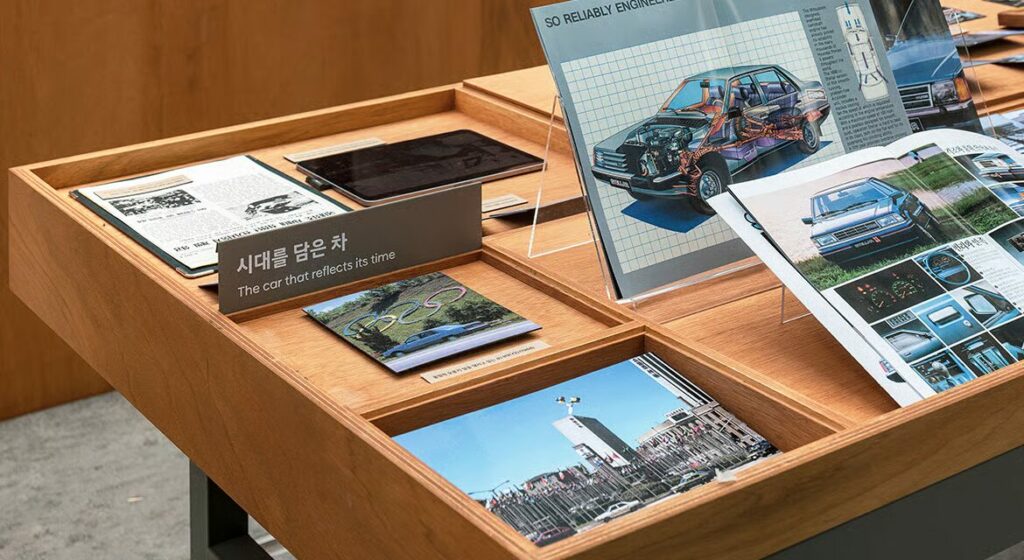 Before you even walk through the doors, the exhibition sets the tone. A 1988 Hyundai STELLAR, restored to pristine condition, stands proudly at the entrance. Nicknamed the “STELLAR 88,” this special-edition sedan was originally built to mark Hyundai’s role as the official vehicle supplier for the 1988 Seoul Olympics.