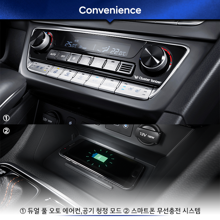 New connectivity solutions have been added to further the Sonata’s class-leading levels of in-car technology, including an additional USB charge port, conveniently positioned on the rear of the center console. Wireless smartphone charging capability is available, with drivers now able to charge compatible devices simply by placing then in the space at the bottom of the center console, with no need for intrusive cables.