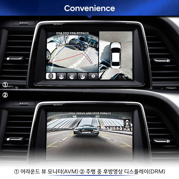 Inside the new Sonata, the center console stack has been enhanced with larger features to create a more visually-striking appearance. Revised audio and heating, ventilation, air conditioning (HVAC) controls are given ‘piano key’ buttons, enhancing the car’s premium feel, while a seven-inch color touchscreen display comes as standard on every new Sonata model, in South Korea. A larger 8-inch Audio Visual Navigation (AVN) system will be made available as an option.