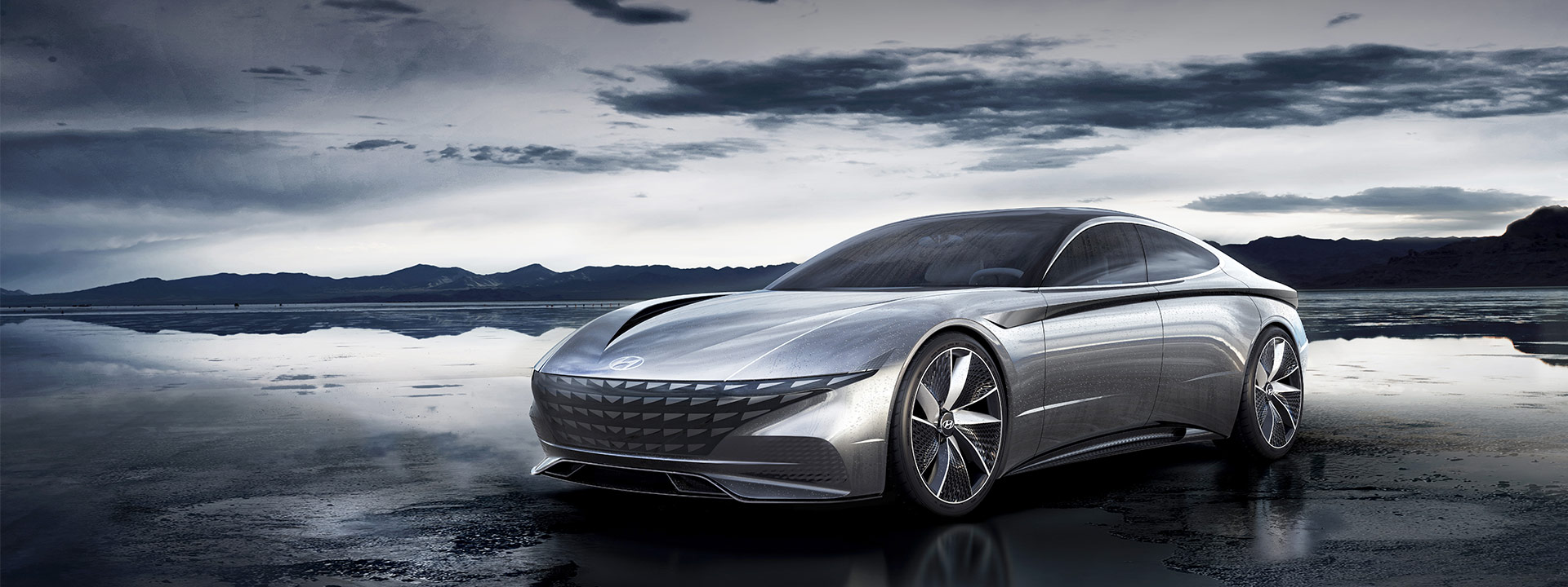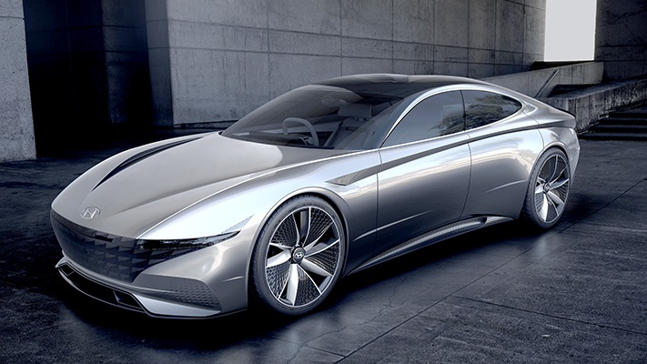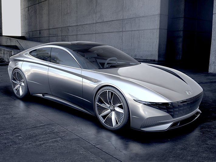 Another goal of the team was to create a vehicle that is instantly recognisable as a Hyundai from a distance. This was achieved by creating a sensuous tension on the side through a harmonious blend of layered crisp lines and pure volumes. Concave and convex forms are carefully orchestrated to provide a sexy character. The concept’s distinctive ambience is also recognisable with a wide, layered front hood, combined with a further enhanced Cascading Grille. The next level of the Cascading Grille comes with a three-dimensional treatment, featuring parametric jewels inside, which gives the vehicle a commanding presence.