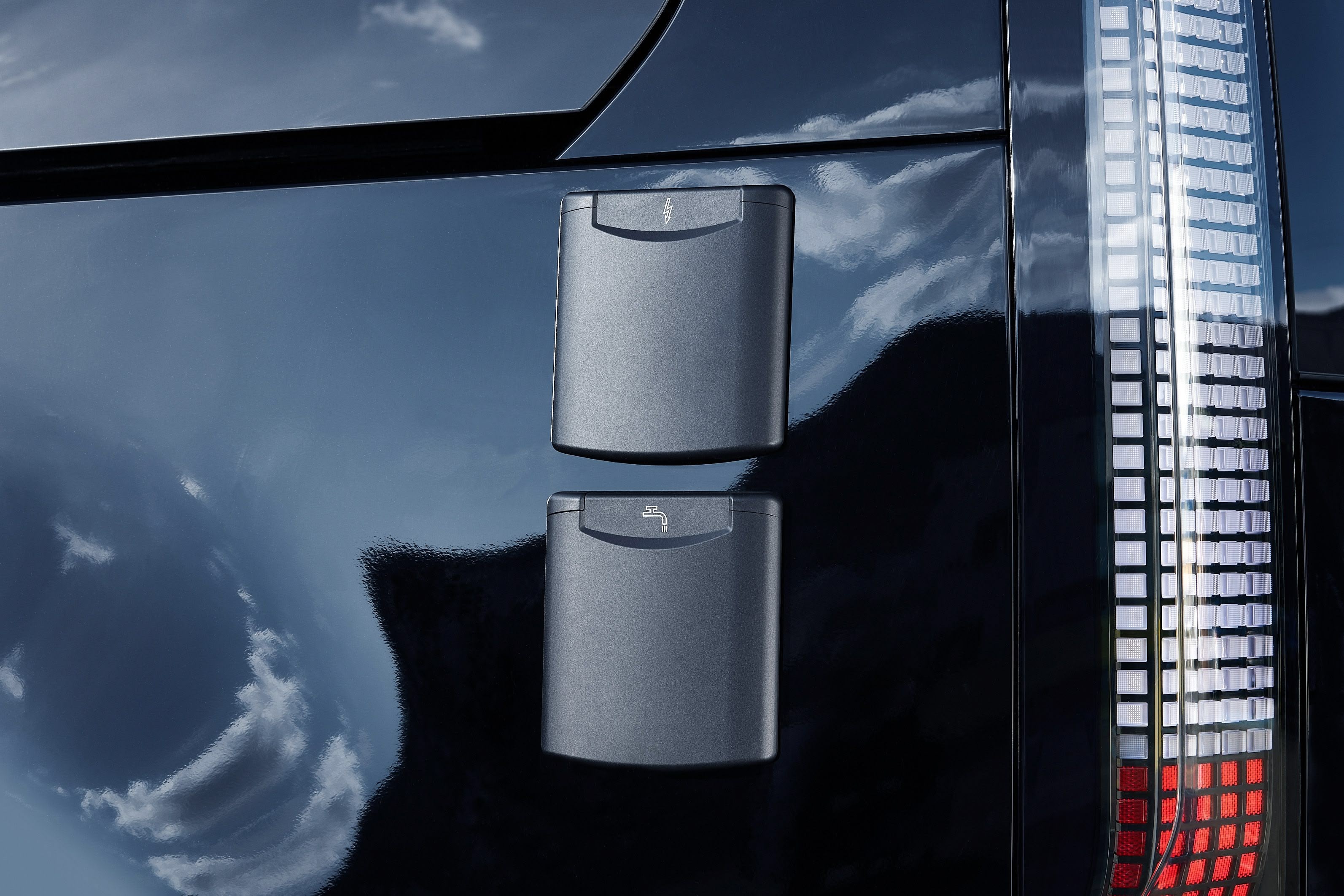 Inside the front of the cabin, the concept features two high-specification captain’s chairs that can rotate electrically through 180 degrees. When stationary, this creates a spacious, lounge-like social area, ideal for relaxing, dining, or socialising inside the vehicle. Combined with the pop-up roof, the rotating seats significantly enhance interior livability.