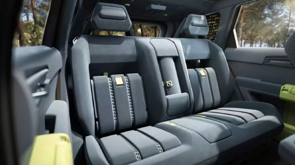 Practicality is central to the design, with multiple storage solutions inspired by modular systems like Dacia’s YouClip: