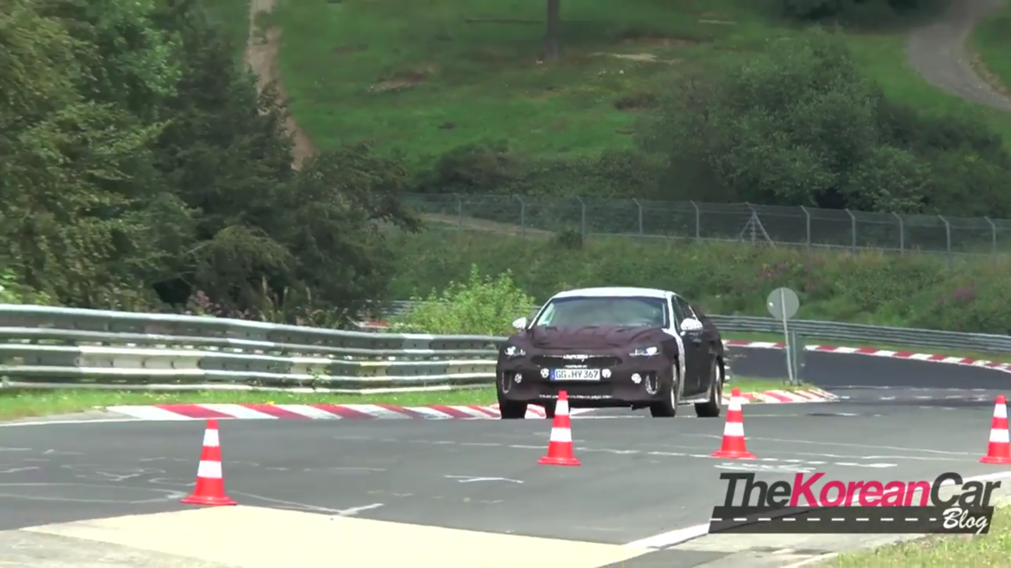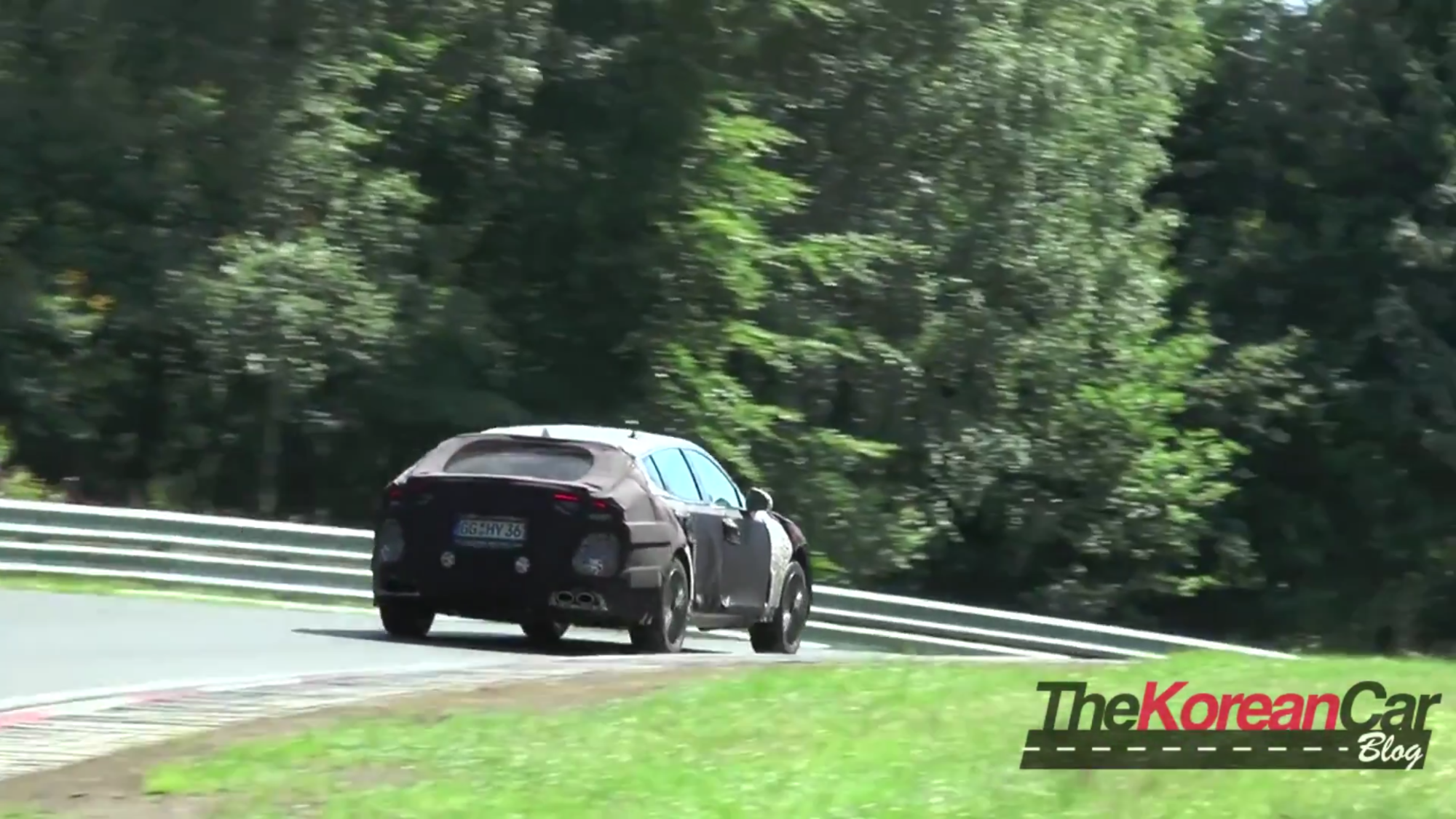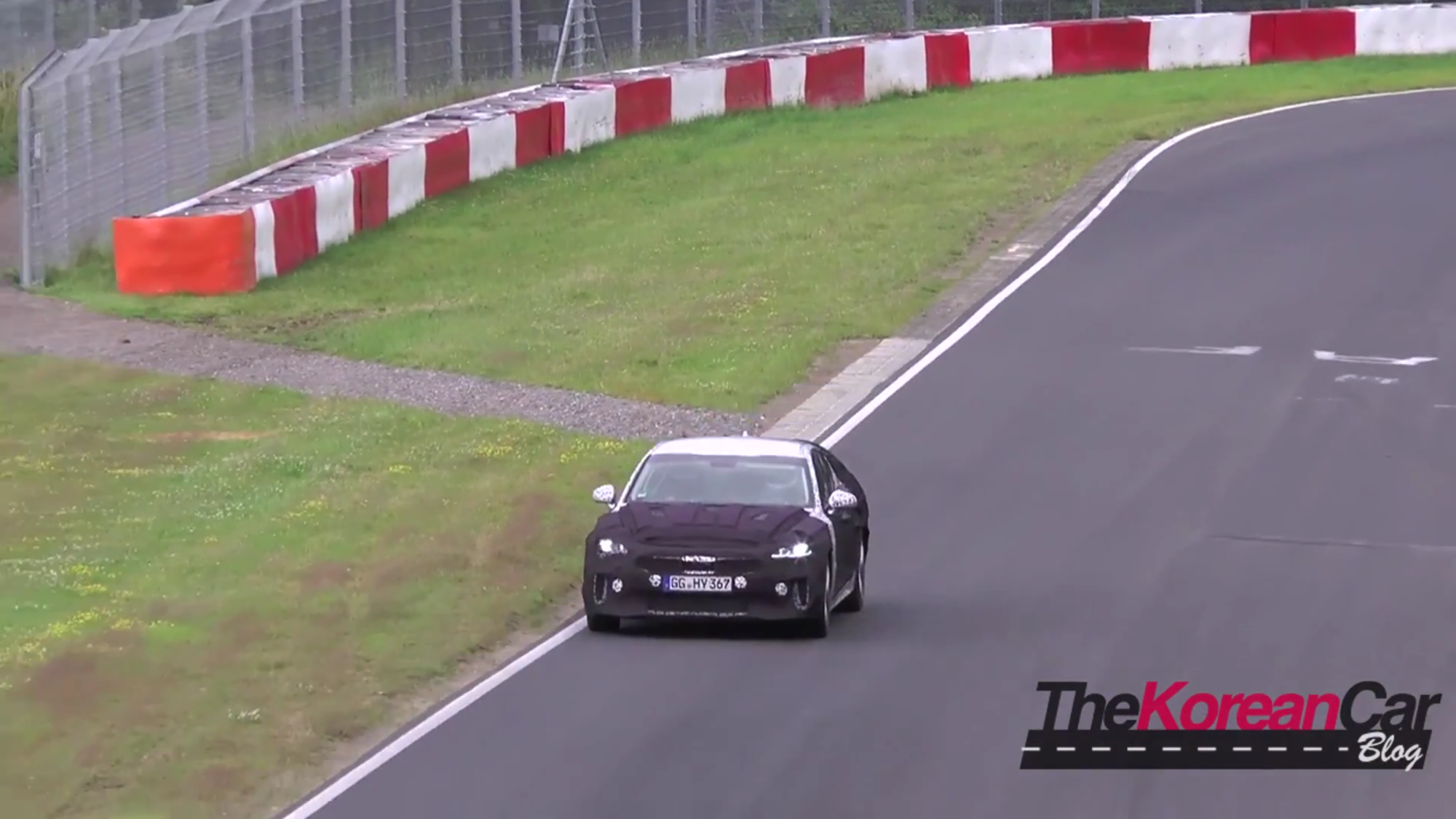 In viewing the GT racing uphill and out of a corner with the tires squealing, its safe to speculate that the car has a bigger motor possibly the 3.3 twin turbo. Although slightly quiet, we can see it in some footage of the car pulling away from a Mercedes. Furthermore, we can also see that Kia is not holding back on testing the GT, considering that the car is fitted with a 4-point roll bar for driver protection.
