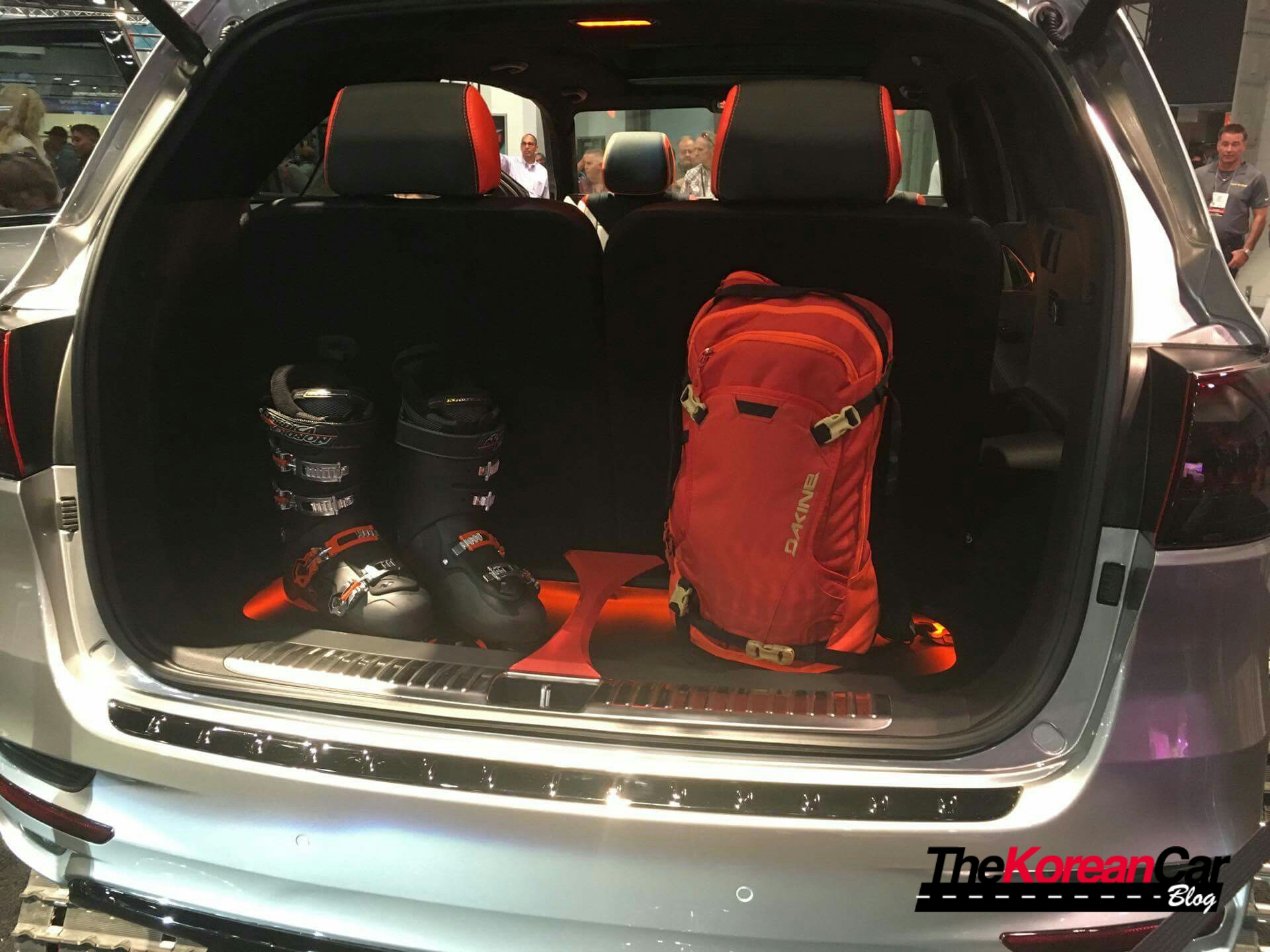 [ads id=”0″ style=”float:left;padding:6px;”]The Sorento Ski Gondola’s interior has been upgraded with custom door panels, dash and center console, which houses a personalized tablet. The interior has also been given a reboot of black and orange leather to compliment the orange and PPG Silver Metallic paint of the Sorento’s exterior. Throughout the interior the floor was given a durable waterproof Line-X treatment to protect against the ice and snow that may find its way inside.