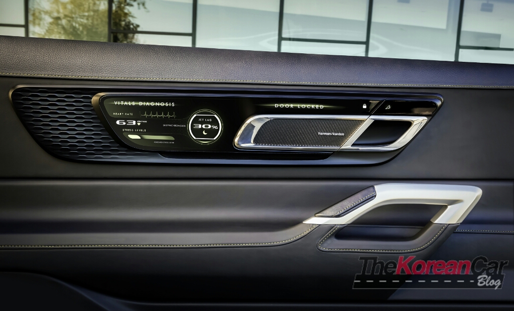 [ads id=”0″ style=”float:left;padding:9px;”]Once obtained, these vitals are displayed on the interior door panel screens, which then systematically synchronize with a Light Emitted Rejuvenation (LER) system. The LER system utilizes a massive, wing-shaped LED panel mounted beneath the oversized sunroof that displays a pattern of therapeutic light to treat desynchronosis (jetlag) and improve the passengers’ energy levels.