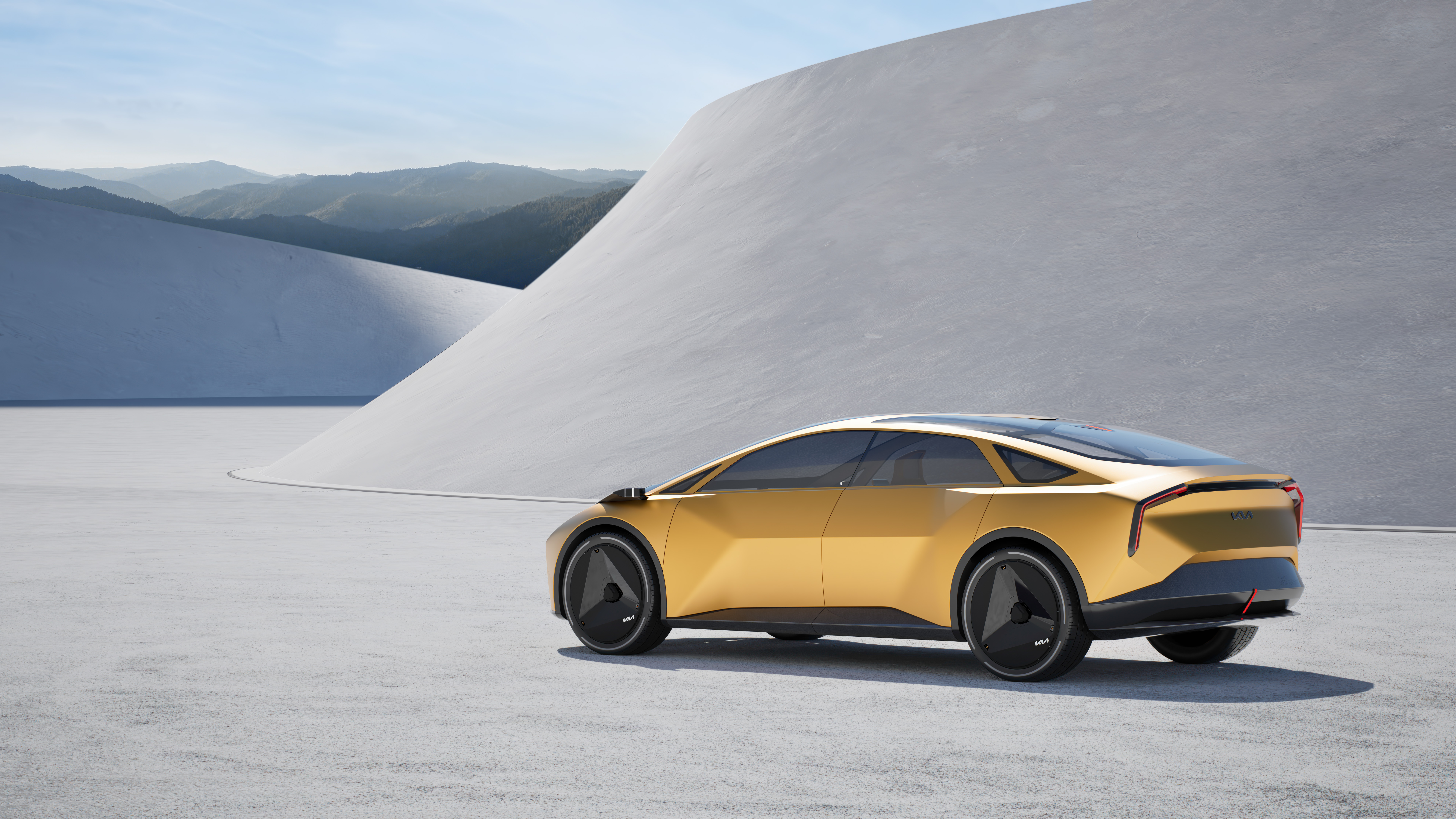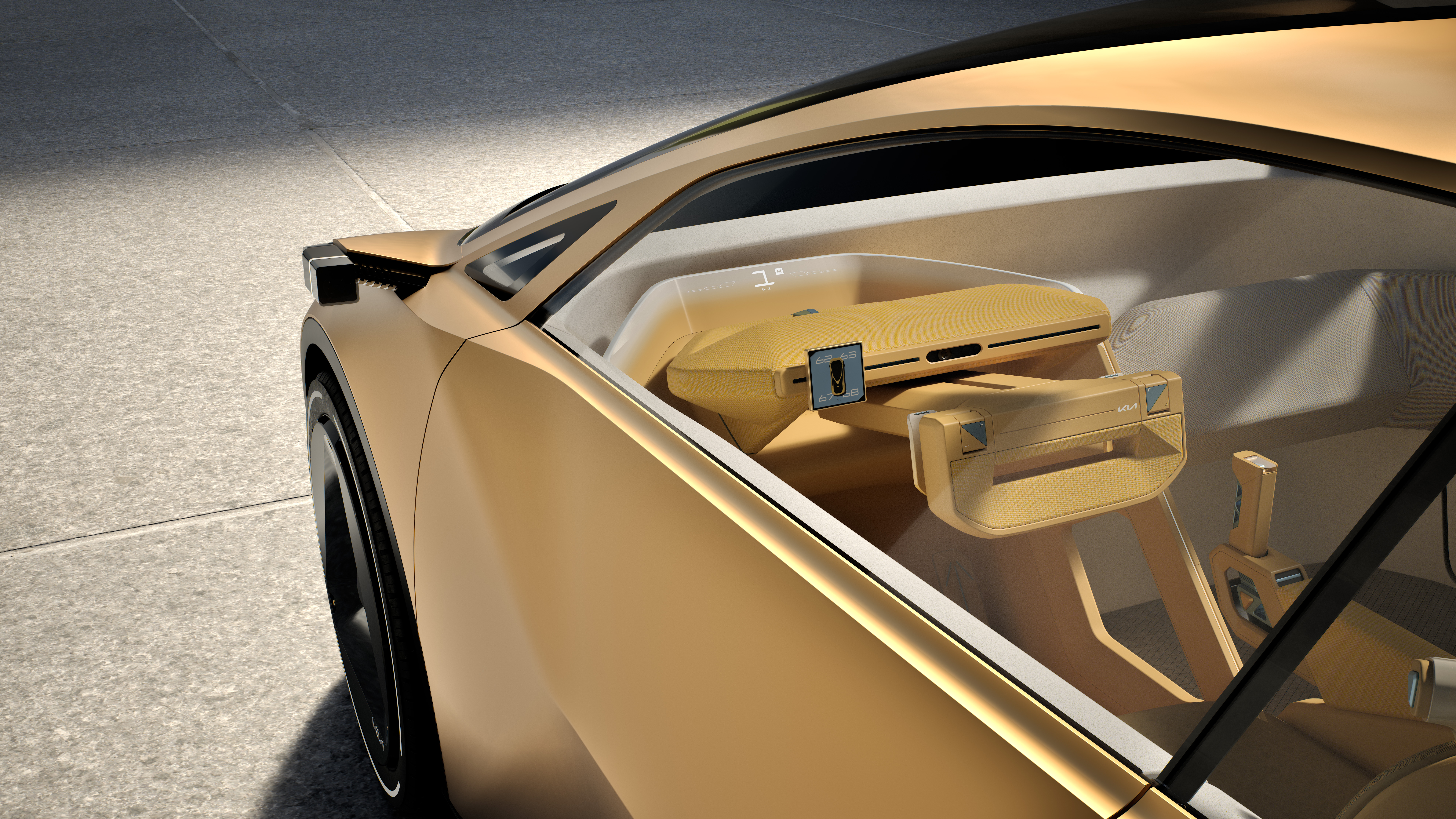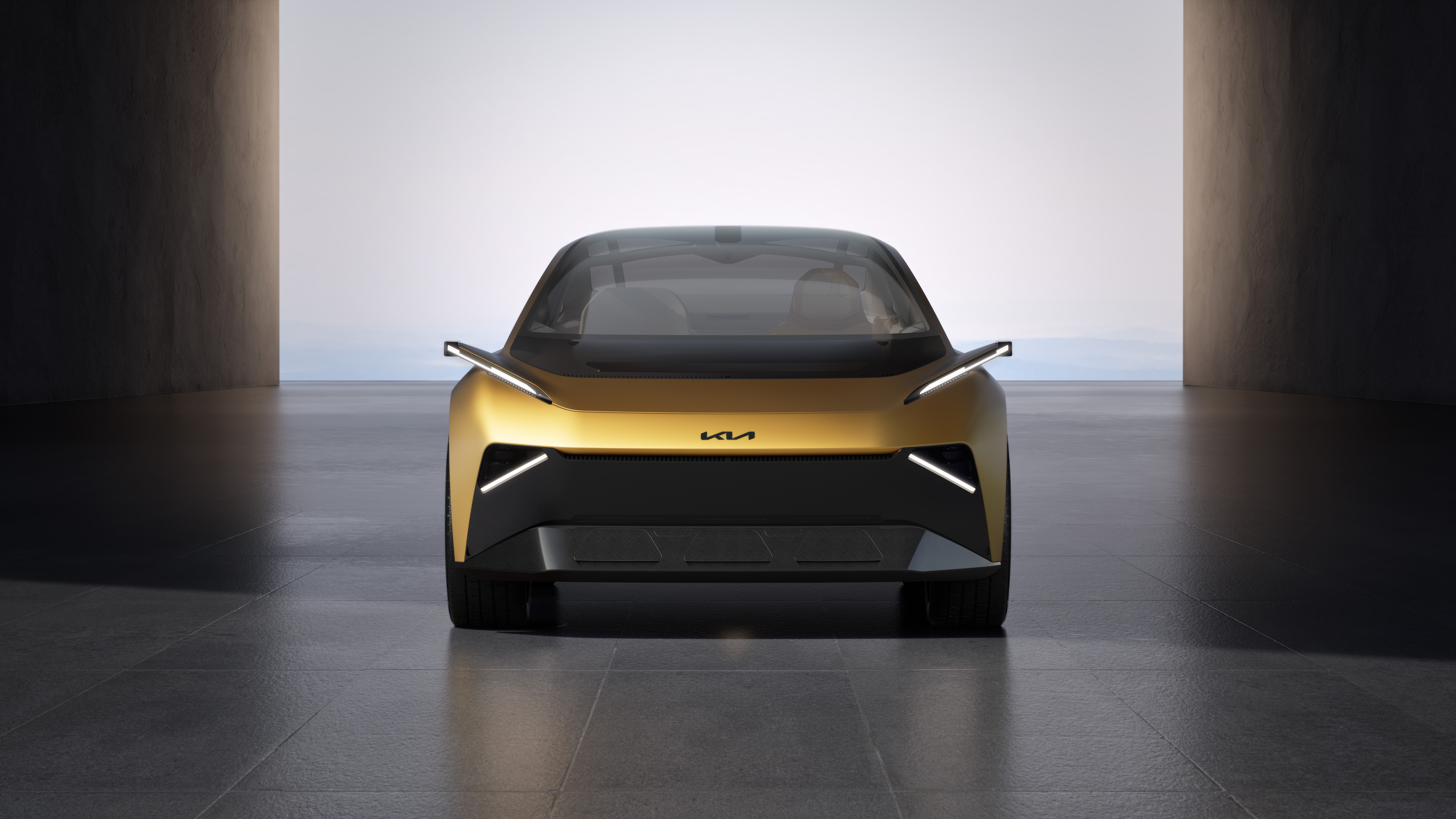 The concept’s exterior design follows Kia’s Opposites United philosophy, merging contrasting themes such as softness and geometry to create a unified, futuristic form. The smooth surfaces evoke seamless motion, while precise lines and angular details add strength and modern character. This combination delivers a vehicle silhouette that is both sleek and visually engaging, capturing the essence of Kia’s progressive identity.