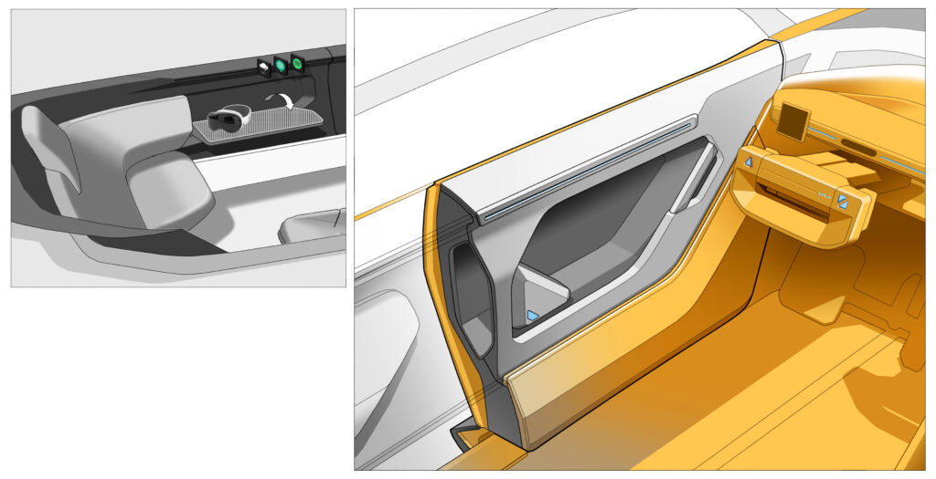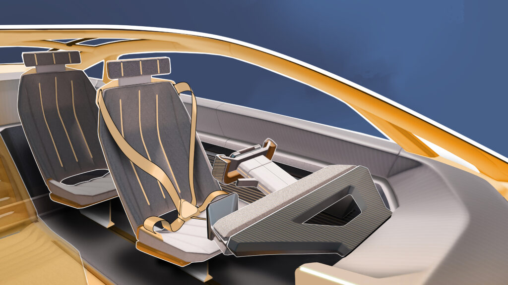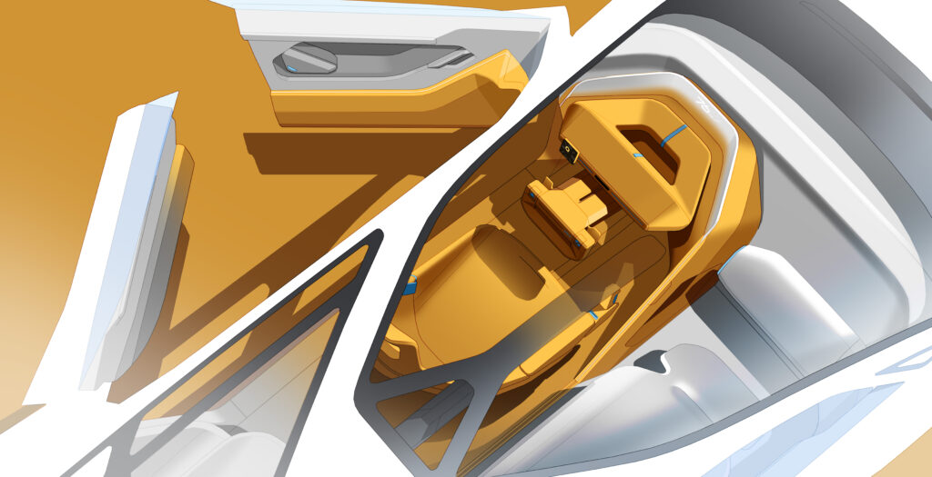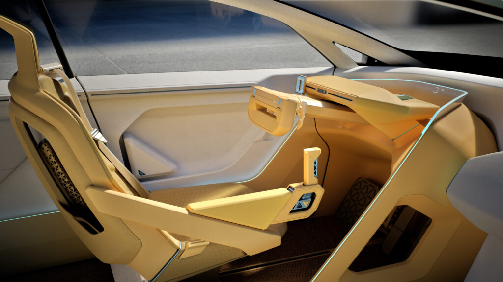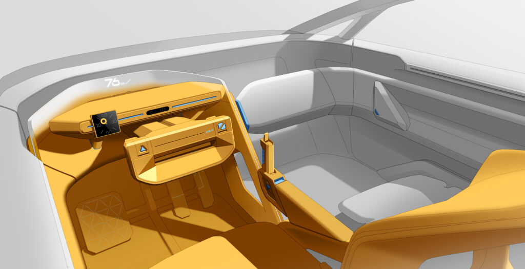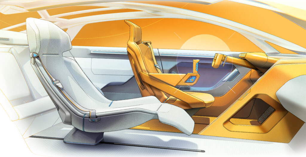 The concept introduces a revolutionary steering wheel that acts as an intuitive control hub for next-generation mobility. It supports three immersive digital modes: