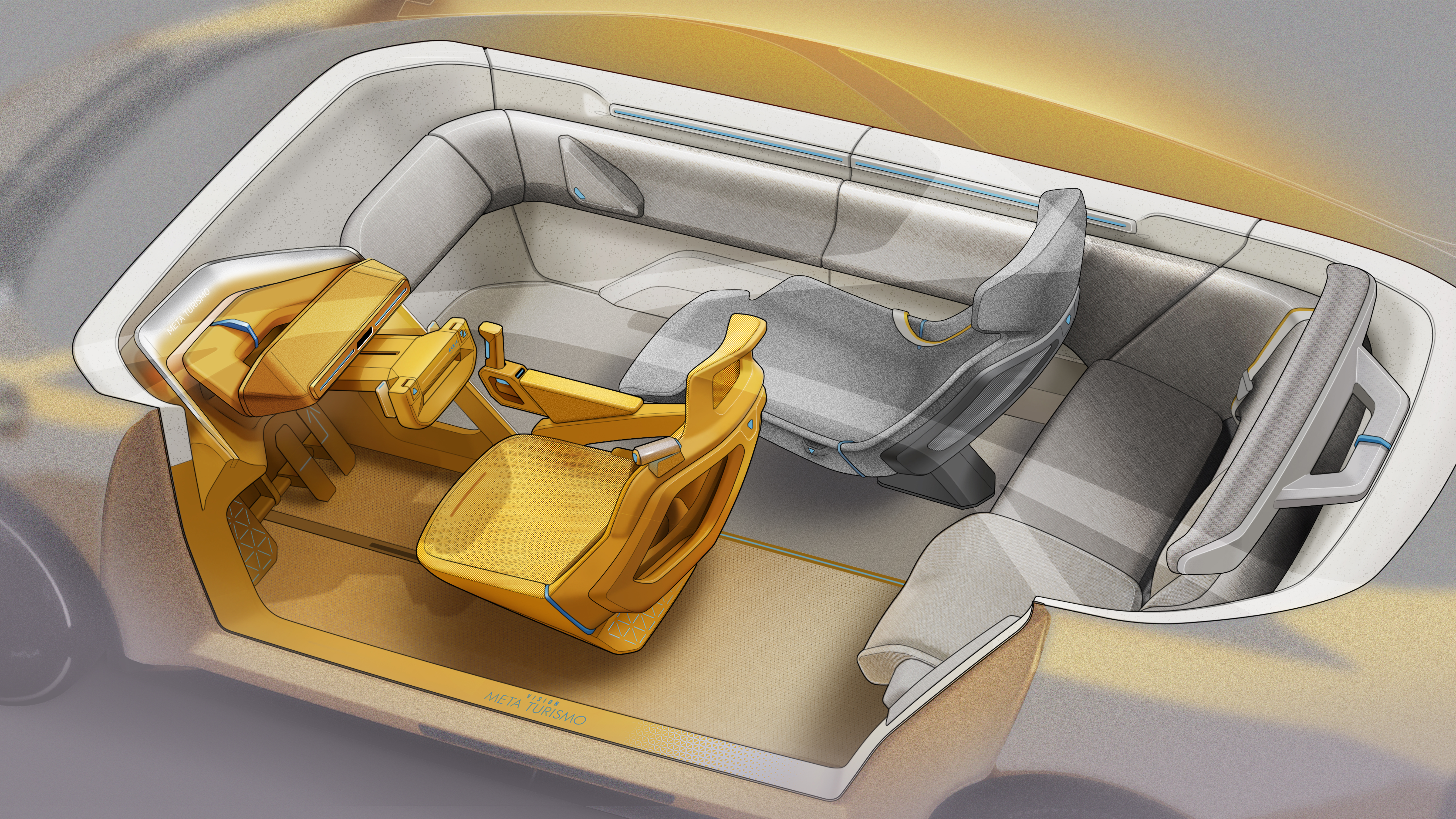 Inside, the Vision Meta Turismo transforms the cabin into a modern lounge space. The interior is crafted to improve human-mobility interaction, offering a relaxed, spacious environment enhanced by digital features and unique design elements. This approach emphasizes comfort, collaboration, and personalization during every journey.