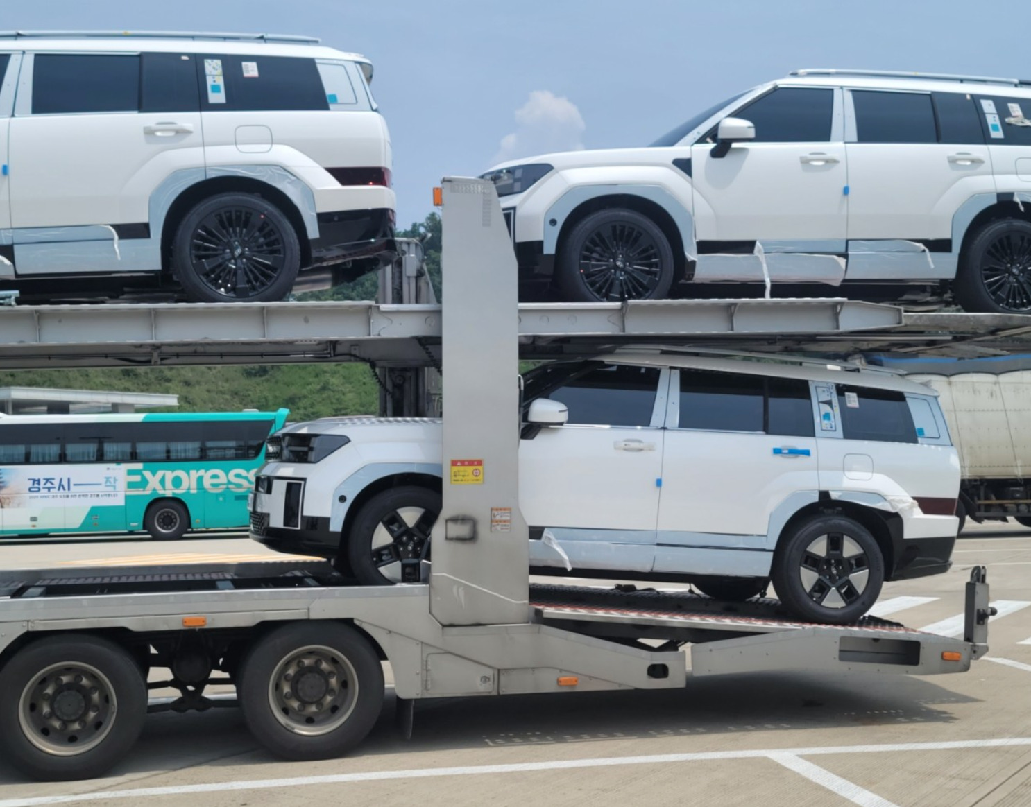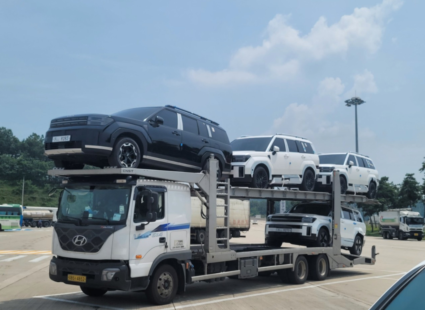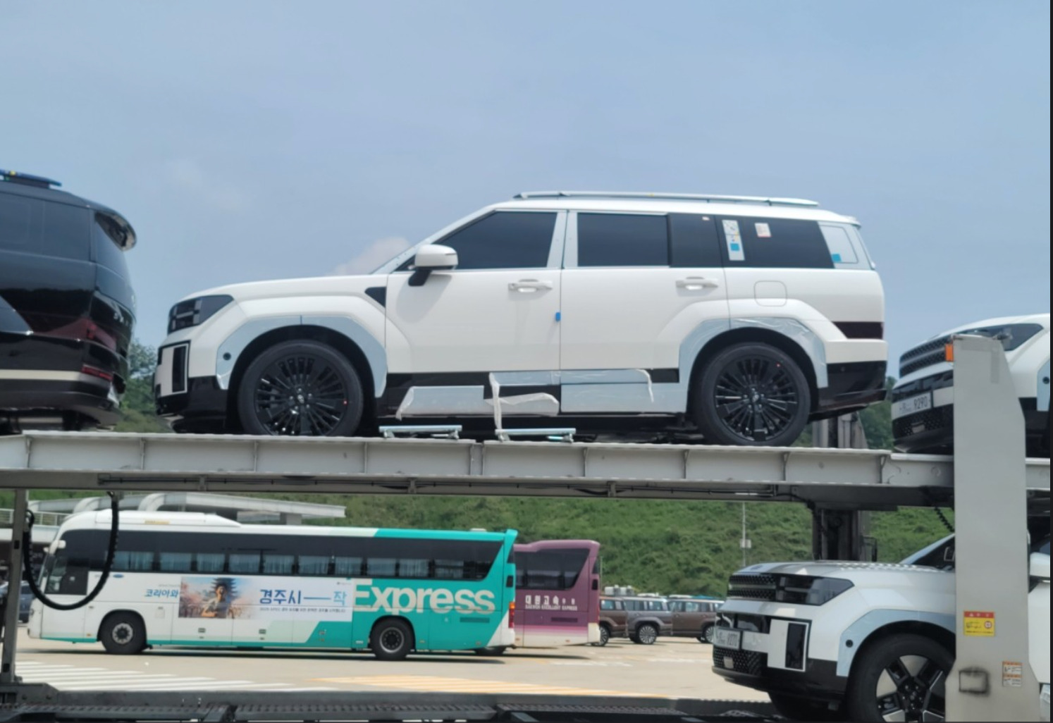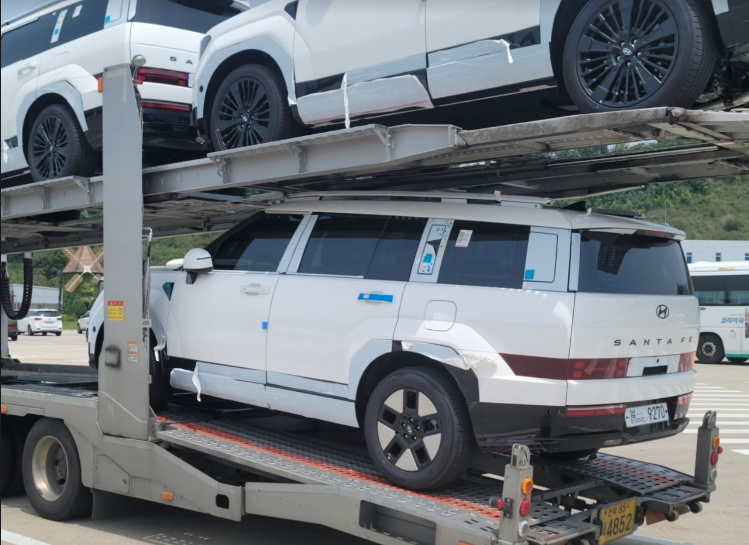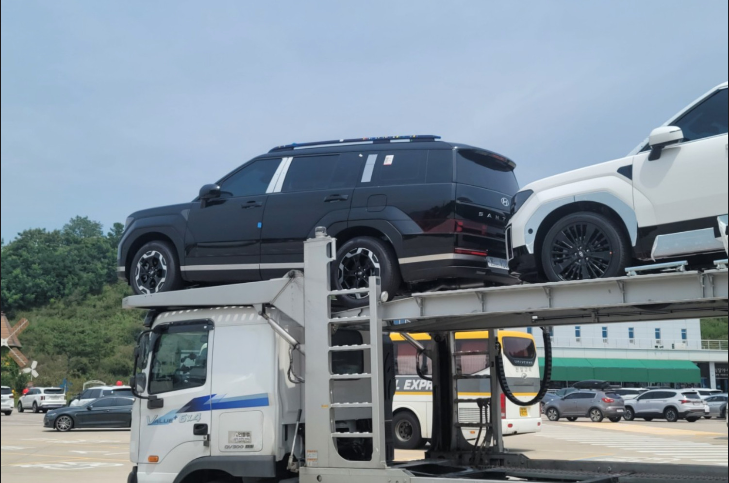 Today we want to show you a bunch of new pictures of the 5th generation Hyundai Santa Fe, this time spied in a highway rest area in multiple colors, trims and specs, while we also discovered a hidden third row window. What do you think?