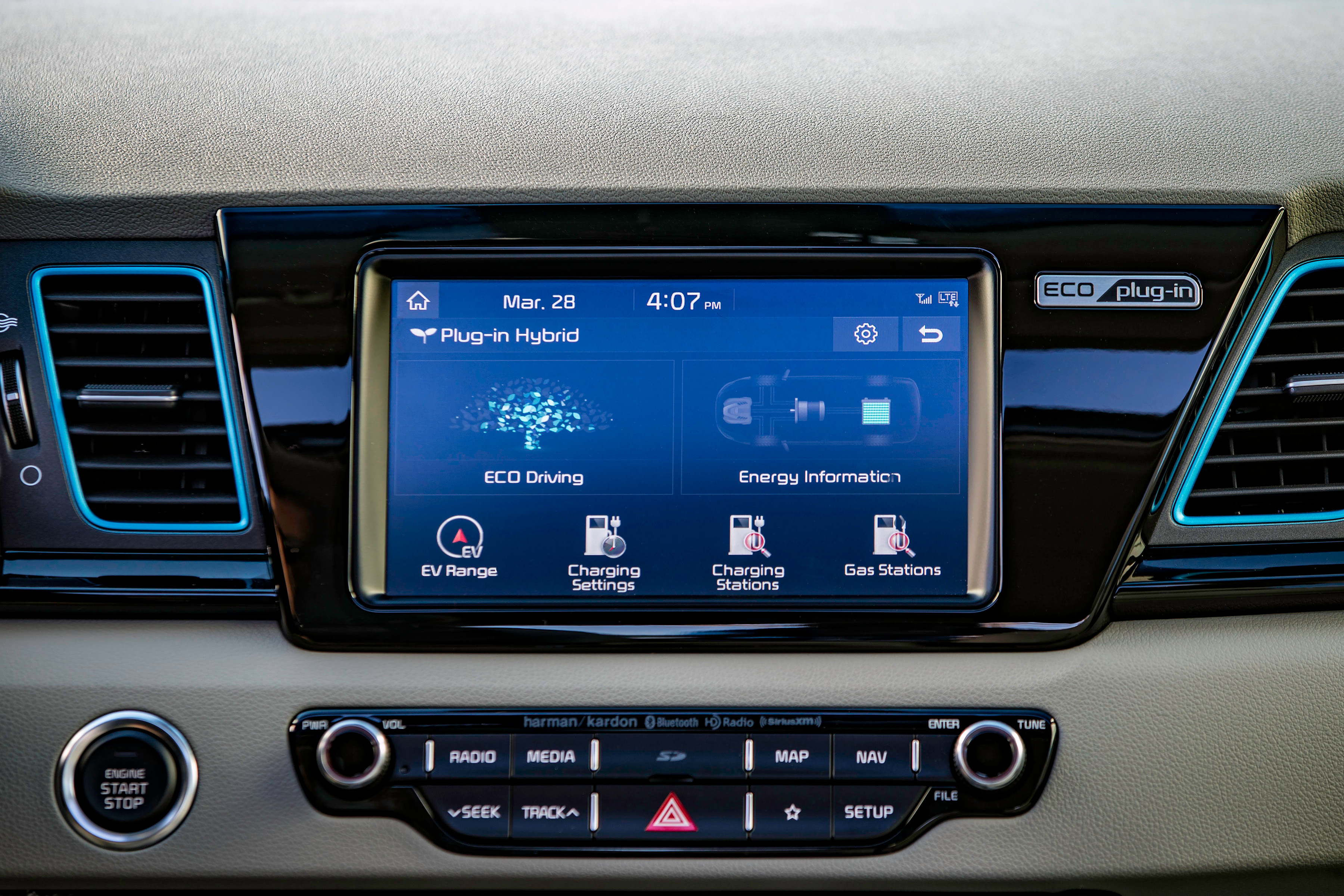 The Niro Plug-in Hybrid is yet another vehicle introduced under the Kia Motors EcoDynamics sub-brand and represents an important next step on the path to nearly tripling the brand’s global lineup of alternative fuel vehicles by 2020, which includes the Niro, Optima Hybrid, Optima PHEV and the Soul EV. The new Niro Plug-in Hybrid offers all the same feature-rich packaging and driving fun of the hybrid Niro, but with a few PHEV-exclusive touches, such as a subtly-modified front grille insert and surround, hybrid blue exterior accents, available LED headlamps, a charge port door (on left front fender), available 7-inch color meter cluster with digital tachometer and “ECO/Plug-In” badges.