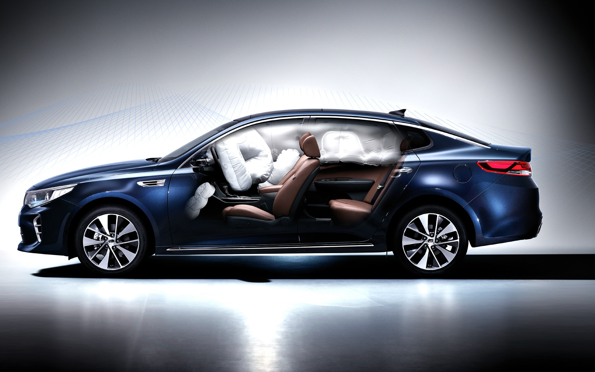 The new K5 is 4,855mm long, 1,860mm wide, stands at 1,465mm and has a wheel base of 2,805mm, which is 10-25 mm larger than the previous model. The new K5 ranges from 22.45 million won to 29.2 million won, depending on trims and options.