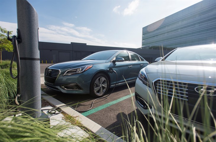 The 2017 Hyundai Sonata Plug-in Hybrid Electric Vehicle (PHEV) offers a class-leading estimated 27 miles of all-electric range and can recharge in less than three hours with a Level-Two charger.