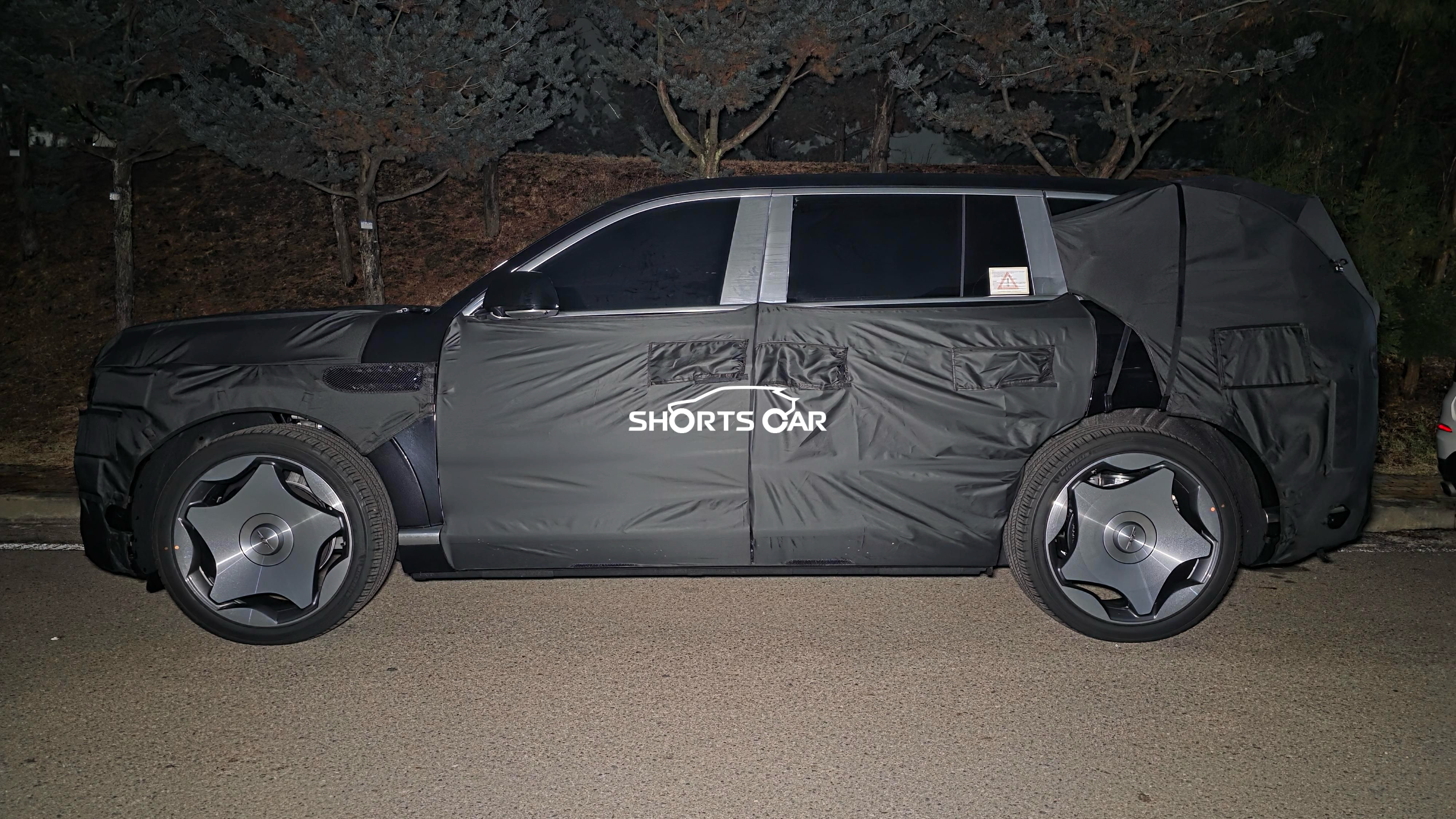 The captured prototype shows that Genesis is pushing the boundaries of automotive design and innovation. Despite heavy camouflage, the GV90’s sleek, elongated silhouette and flush-fitting doors hint at a pillarless construction, setting the stage for one of the most daring SUV designs in the premium segment.