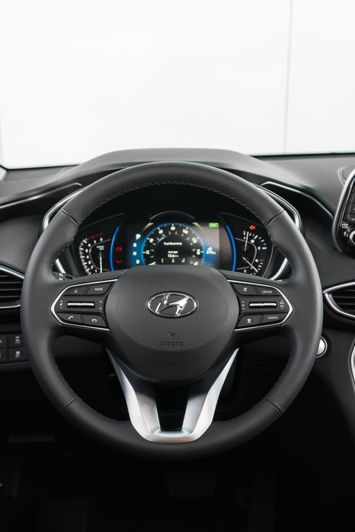 The Santa Fe interior design combines premium quality with a roomy layout featuring a strong horizontal design theme and enhanced visibility. Premium touches such as the layered, three-dimensional instrument panel and contrasting seat stitching ensures a high level of luxury within the cabin. The Santa Fe’s larger DLO enhances the interior’s feeling of openness with generous amounts of natural light.